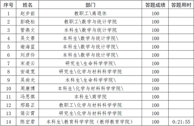 说明:每人只有一次获奖机会,取最优成绩获奖,成绩顺次递补。