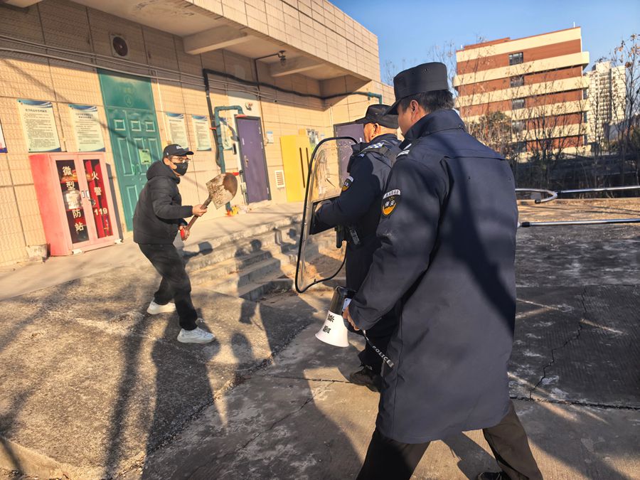 安保人员对可疑人员实施围堵