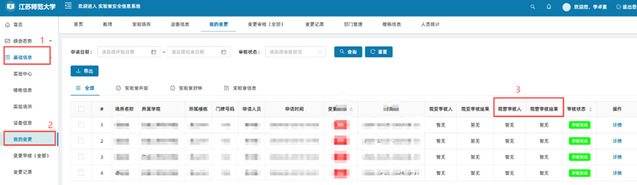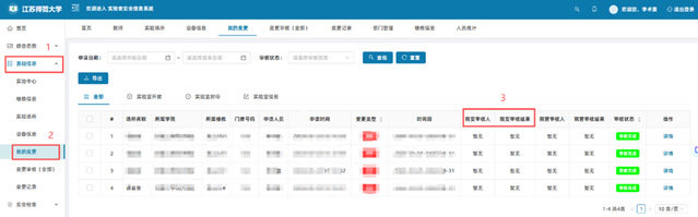 2.为做好实验室开放申请工作,在1月13日起,在“实验室安全信息系统”中所有实验室的状态将被设置为“关闭中”。需要开放的实验室,请实验室安全责任人于1月13日—1月15日在“实验室安全信息系统”完成线上申请,选择实验室开放时间段及原因(操作流程附后);二级学院管理员需于1月16日前完成审核;二级学院分管领导需于1月17日前完成审核。线上审核通过后,各相关单位须将经本单位安全工作领导小组审议通过的纸质版材料签字盖章后报送至14#202(具体格式详见附件)。经学校审核同意开放的实验室在“实验室安全信息系统”中的状态将被调整为“开放中”。